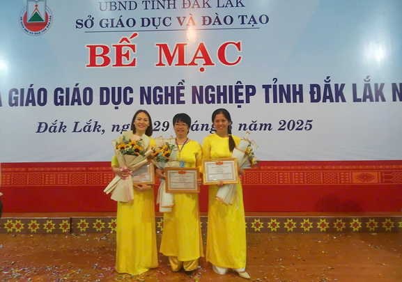 Hội giảng là dịp để tôn vinh những nhà giáo tâm huyết, sáng tạo, tận tụy với nghề. Ban tổ chức đã trao 03 giải thưởng cho các tiết giảng xuất sắc của Trường trung cấp Đắk Lắk, trong đó có 02 giải Ba: Cô Vũ Lan Hương môn khoa Kinh tế và Cô Lê Thị Mai Liêm khoa Cơ bản và 01 Khuyến khích Cô Nguyễn Thị Châu khoa Kinh tế.