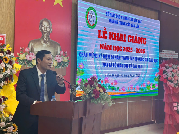 Tại buổi lễ, ThS. Lê Thanh Hùng Hiệu trưởng Trường Trung cấp Đắk Lắk, đã phát biểu khai giảng, ôn lại truyền thống dạy và học của nhà trường, đồng thời khẳng định quyết tâm nâng cao chất lượng đào tạo, tăng cường gắn kết với thực tiễn và nhu cầu nhân lực tại địa phương. Nhà trường cũng bày tỏ lòng biết ơn đối với sự hỗ trợ của các cơ quan, ban ngành trong suốt thời gian qua.