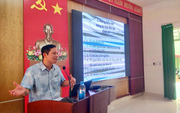 ThS. Lê Thanh Hùng Hiệu trưởng nhà trường báo cáo viên chuyên đề “Nội dung cốt lõi trong báo cáo chính trị trình Đại hội XIV của Đảng”