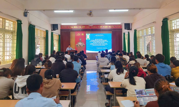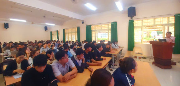 Thầy Nguyễn Đình Quân – Phó phòng Đào tạo – CTHSSV báo cáo viên chuyên đề “Triển khai Quy chế đào tạo, kiểm tra, thi, xét công nhận tốt nghiệp; Quy chế công tác học sinh sinh viên; nội quy, quy chế của trường và các chế độ, chính sách đối với người học.”