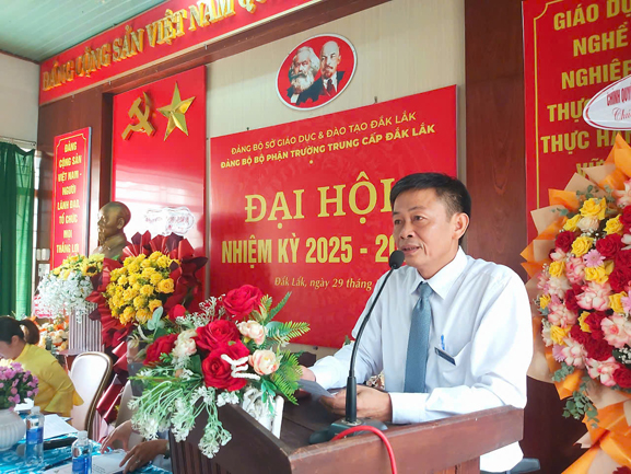 Phát biểu khai mạc Đại hội, Đ/c Nguyên Đình Thịnh -Bí thư Đảng bộ đã đánh giá trong nhiệm kỳ 2020 – 2025, được sự quan tâm, chỉ đạo sát sao của Ban Thường vụ, Ban chấp hành Đảng bộ Sở; sự đoàn kết, nỗ lực của toàn thể cán bộ, đảng viên và người lao động trong toàn Đảng bộ, Đảng bộ bộ phận trường Trung cấp Đắk Lắk đã hoàn thành chỉ tiêu và nhiệm vụ trọng tâm mà Nghị quyết Đại hội nhiệm kỳ 2020 – 2025 đã đề ra. Nhiệm kỳ 2025 – 2030, toàn Đảng bộ tiếp tục phát huy những kết quả và thành tích đã đạt được, đồng thời với phương châm đoàn kết, thống nhất, phát huy dân chủ, tập trung trí tuệ, giữ vững kỷ cương, Đại hội Đảng bộ bộ phận trường Trung cấp Đắk Lắk tập trung thực hiện tốt 03 nội dung: Đánh giá, tổng kết việc thực hiện Nghị quyết Đại hội nhiệm kỳ qua và xây dựng phương hướng, nhiệm vụ, giải pháp của đảng bộ trong nhiệm kỳ 2025–2027; thảo luận, đóng góp ý kiến dự thảo văn kiện Đại hội lần thứ XIV của Đảng; bầu cấp ủy, Bí thư, Phó Bí thư đảng bộ bộ phận nhiệm kỳ 2025–2030. Kêu gọi mỗi đảng viên và toàn thể Đại hội sẽ nêu cao tinh thần trách nhiệm trước Đảng bộ, chấp hành nghiêm chỉnh quy chế, nội quy, thực hiện tốt chương trình của Đại hội, để Đại hội thành công rực rỡ, đáp ứng niềm tin và nguyện vọng của toàn thể cán bộ, đảng viên.