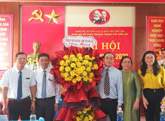 Đồng chí Nguyễn Hữu Quát phó bí thư Đảng bộ Sở Giáo dục và Đào tạo tỉnh Đắk Lắk tặng hoa chúc mừng Hội Nghị Đảng bộ cơ sở Trường Trung cấp Đắk Lắk.