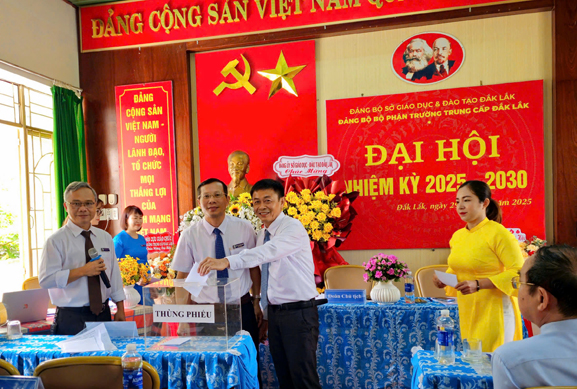 Thực hiện Kế hoạch số 10-KH/ĐUS, ngày 19/5/2025 của Đảng uỷ Sở GDĐT về việc tổ chức Đại hội Chi bộ nhiệm kỳ 2025-2027 và Đại hội Đảng bộ bộ phận trực thuộc, Đảng bộ Sở GD&ĐT nhiệm kỳ 2025-2030. Được sự đồng ý của Ban Thường vụ Đảng ủy Sở GD&ĐT, sáng ngày 29 tháng 5 năm 2025, Đảng bộ bộ phận trường Trung cấp Đắk Lắk long trọng tổ chức Đại hội nhiệm kỳ 2025-2030. Đại hội rất phấn khởi, vinh dự được đón tiếp Đ/c Nguyễn Hữu Quát, Phó BT Đảng ủy Sở về dự chỉ đạo đại hội; các Đồng chí đảng ủy viên, Bí thư các Chi bộ trực thuộc Đảng bộ Sở GDĐT và toàn thể đảng viên của Đảng bộ nhà trường.