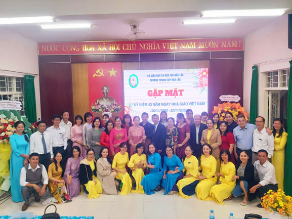 Ban giám hiệu nhà trường cùng giáo viên chụp hình kỹ niệm cùng giáo chức Trường Trung Cấp Đắk Lắk